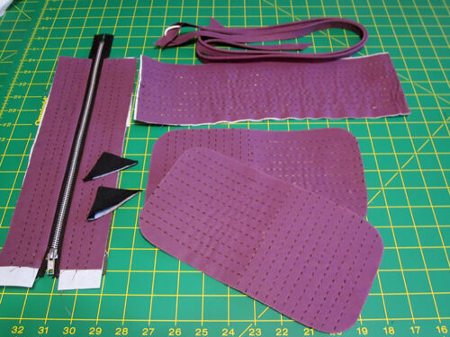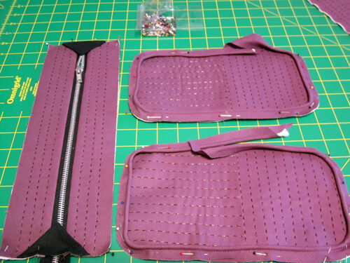 NOTE: The photo below also shows the base panel, zipper panel and pull tabs. Hang on to those; you’ll put them together in the next section.