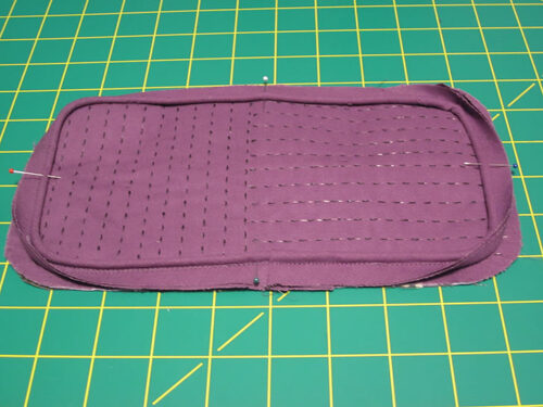 - Repeat to add the front panel. Stop for just a moment to confirm the stitch direction of the panel. It looks best if the front and back panels are opposite one another – in other words, on one side the panel has horizontal stitching on the right hand side and on the other side the horizontal stitching is on the left hand side.