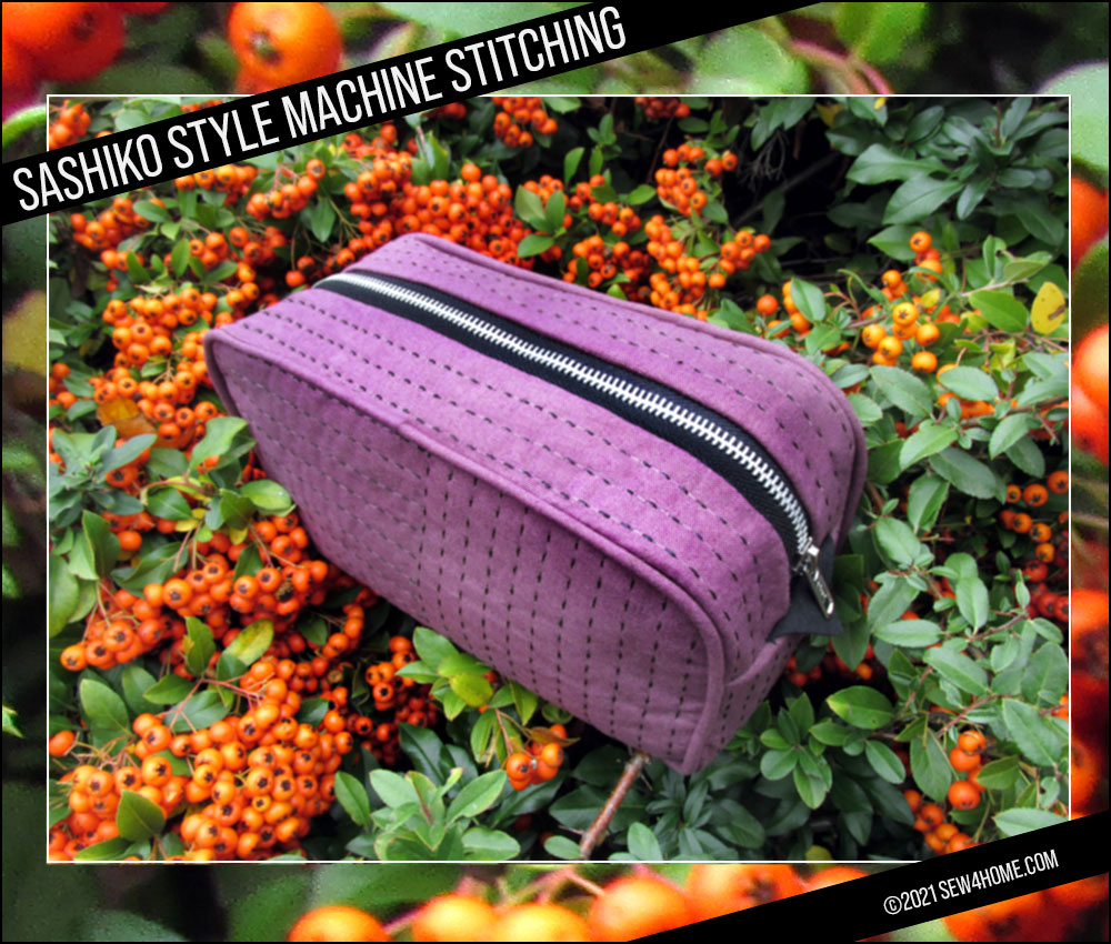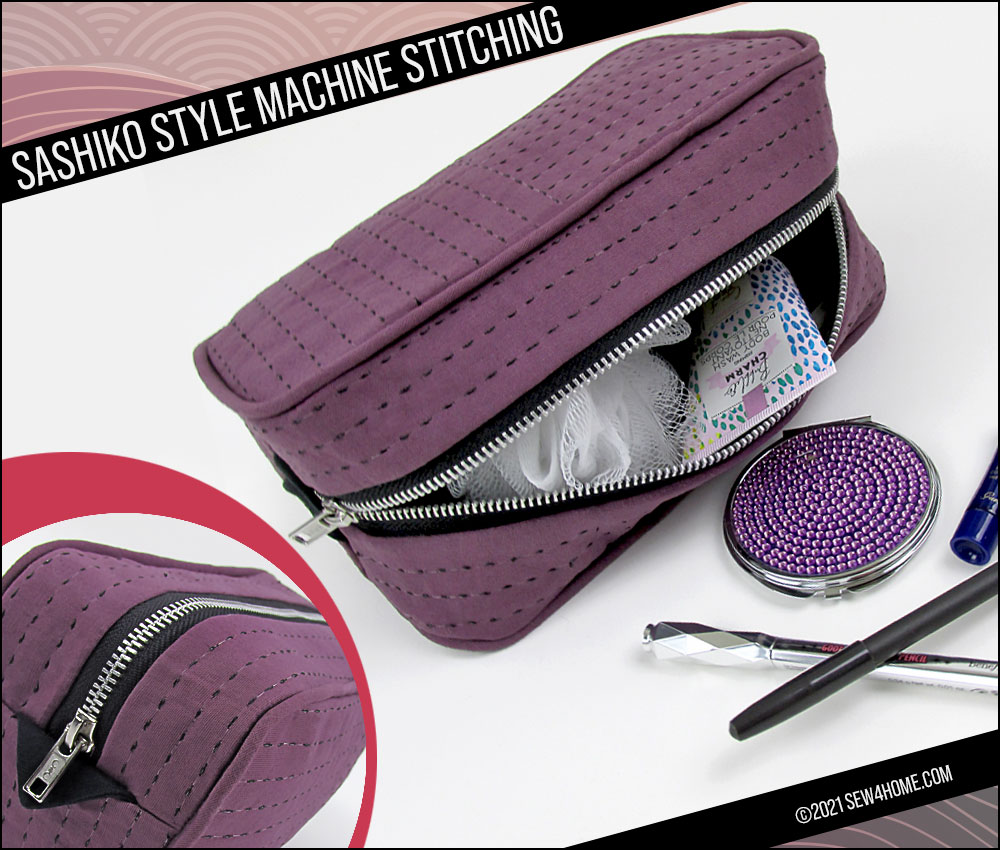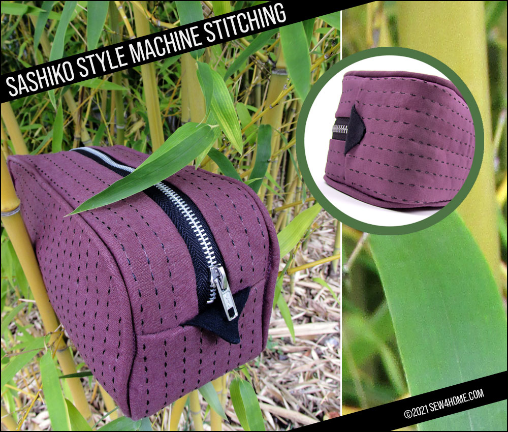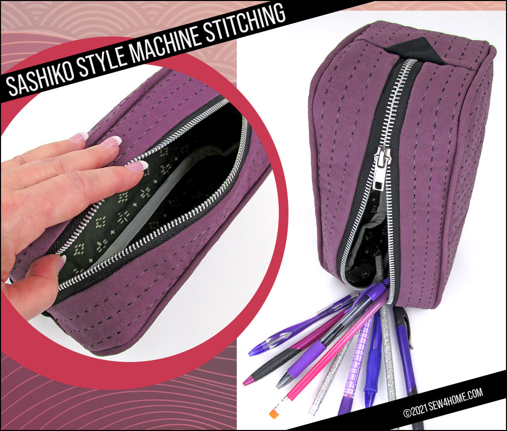 We’ve created two different zippered cases to showcase our own experimentation in Sashiko style. This first case is done entirely with straight stitching and can be created on any machine featuring a Triple Stitch or a named Sashiko Stitch. A Triple Stitch is likely to be found within your machine’s utility stitch collection. If you are lucky enough to sew on a Janome machine with a wide range of unique stitches, such as the Janome Continental M7, look in the Sewing Applications tab to find three specially programmed Sashiko Stitches.