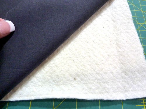 - When the front exterior layer is completely finished, place the remaining back layered pair of cotton/batting wrong sides (batting sides) together with the front.