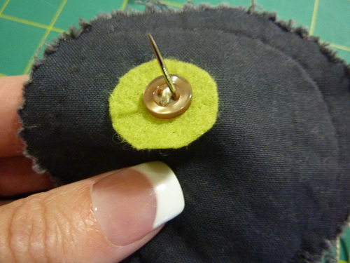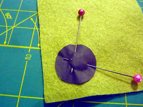 - Set one exterior/batting pair aside. The remaining pair is the one on which you’ll hand stitch your felt/floss/button accents.