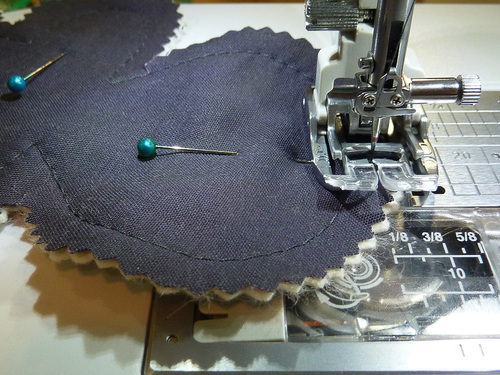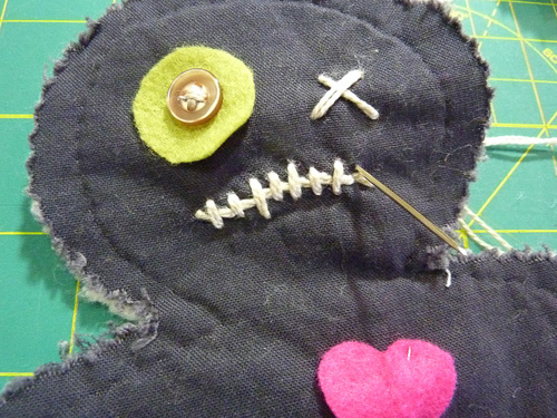 - With each exterior and batting pair still layered, machine baste around the exterior of each zombie shape.