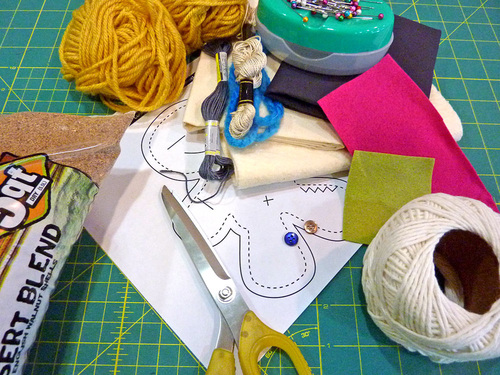 - Scraps of embroidery floss, yarn, and felt to contrast with your exterior fabric for the face and body accents