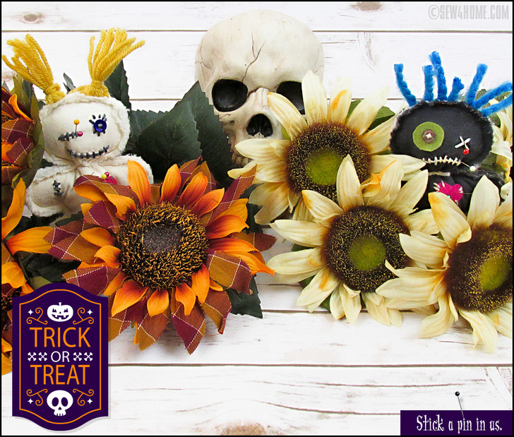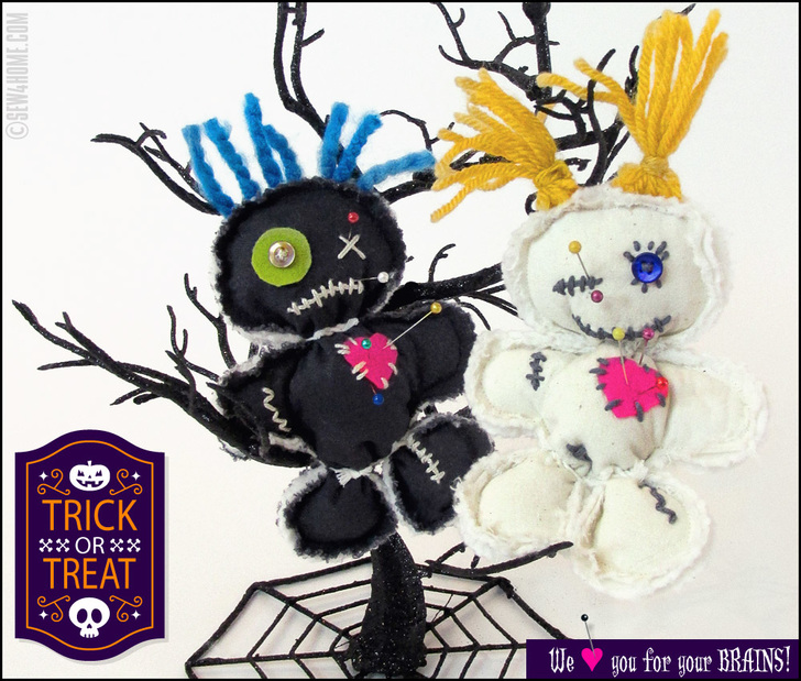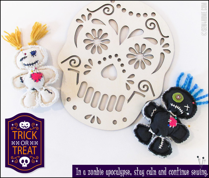 We believe zombies actually enjoy being pincushions! It’s a nice way for them to relax; being the walking dead is kind of hard work. However, our zombie pair is friendly and not dangerous at all as they hold pins for you at your sewing or cutting table. You can tell by their tattered pink hearts they aren’t out to do any harm!